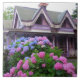 Purple and pink hydrangeas and a purple Victorian cottage in Oak Bluffs on Martha's Vineyard. The Martha's Vineyard Campmeeting Association (MVCMA), a popular attraction on the island, is home to hundreds of Victorian gingerbread cottages. Oak Bluffs was once known as Cottage City. Martha's Vineyard is located in Massachusetts, just off of Cape Cod.