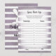 Aproveite este jogo de adivinhação do chá de fraldas da idade deles sobre o fundo de listras de aquarela suaves, roxas e brancas. Coelho bonito, branco e coelho nas costas com modelos criados para você.