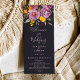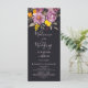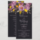 Queda elegante programa de casamentos florais roxos de inverno apresentando uma caligrafia moderna e elegante o casamento de Script em flores roxas, laranja e amarelas com folhagem verde-sábio em preto escuro