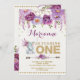 convite para elefantes bebêprimeiro primeiro aniversario elefanteconvites para o primeiro aniversárioaniversário de elefantes bohoselvagemcaçador de sonhospúrpura e ourofloral roxoflores roxasconvite de aniversário para elefantes