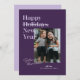 Não se aproximou de enviar seus cartões de Natal a tempo? Este cartão de Ano Novo já cobriu. Este cartão roxo festivo contém a expressão "Feriados Felizes", com feriados ultrapassados e Ano Novo, abaixo escrito. Tem espaço para uma foto de solteiro na frente e mais duas fotos na parte de trás. Nunca é tarde demais para enviar um pouco de amor e alegria de férias.