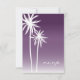 Um rsvp de casamento de praia único com uma ilustração de duas palmeiras brancas à esquerda sobre um fundo de ombre roxo.