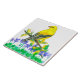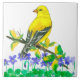 Um azulejo cerâmico decorado com um Goldfinch oriental amarelo brilhante com violetas roxas florescentes ilustradas com tinta e aquarela. Inspirado pelo pássaro estadual e flor estadual de Nova Jersey. Você pode adicionar texto ao ajustado das suas necessidades.