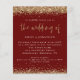 Um valor para o alternativo do ORÇAMENTO em tamanho menor de 4,5 x 5,6" de semirbrilho de 110 lbs, que é de espessura semelhante a um cartão postal (no entanto, não é adequado para uso como cartão postal). POR FAVOR, OBSERVE QUE HÁ UM convite por folha. Código QR de Orçamento Borgonha com Convite Dourado para Casamento com Literatura. Adicione seu código QR ao seu site de casamento no verso faz com que esta seja uma opção conveniente para seus convidados para RSVP e veja todos os detalhes sem a necessidade de RSVP separado e cartões de detalhes. Você pode criar códigos QR gratuitamente on-line. Basta pesquisar "Criador de código QR" e muitas opções surgem para criar gratuitamente. Uma tipografia elegante está em ouro para o título principal "O Casamento de complementar o resto do texto que você pode personalizar facilmente, com bordas de confete falho dourado no topo e no fundo e também no verso.