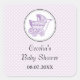 Um prame vintage cercado dentro de uma borda marrom destaca este adesivo elegante de chá de fraldas. Impressão branco sutil contra violeta suave para adicionar uma aparência clássica. Facilmente personalizado em um obrigado que você cola. Disponível em cores alternativas com produtos correspondentes.