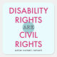 Imagem tem o texto "Direitos de Deficiência são Direitos Civis" em rosa e azul, com "rede feminina autista" abaixo da de cinzas escuras. O fundo é azul pálido.