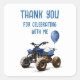 Prepare-se para comemorar em estilo com o nosso "Obrigado por comemorar comigo" Sticker com um tema azul divertido de bicicleta ATV quad! Perfeito para o aniversário do seu pequeno piloto, este adesivo adiciona um toque divertido aos seus convites. Totalmente personalizável para corresponder aos seus detalhes de eventos, é a maneira ideal de deixar todos entusiasmados por uma celebração cheia de aventuras!