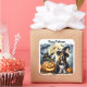 Uma imagem fofa de um cão vestido de bruxa, com abóboras e morcegos, é apresentada neste adesivo quadrado de Halloween. Com a mensagem "Feliz Halloween", torna este um ótimo adesivo para usar naqueles envios especiais, decorações, álbuns de recortes e muito mais!