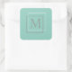 Quadrado Adesivo de Monograma Moderno Turquesa Pastel e Cin