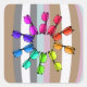 Design digital com fundo de listras com um design circular com óculos coloridos arco-íris. Que óculos você vestiria?