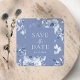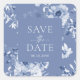 Quadrado Adesivo Floral Azul Desbotado "Save the Date"