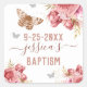 Quadrado Adesivo Personalizado de Batismo de Borboleta Flor