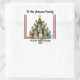 Um encantador adesivo quadrado adornado com uma colorida árvore de Natal e motivos festivos adiciona um toque pessoal a presentes lindamente envoltos. Perfeito para comemorações familiares, mostra uma mensagem sincera, aumentando o espírito sazonal de dar.
