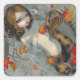 Sereia de outono - uma bela sereia de olhos grandes - um pouco de tristeza ou melancolia nos seus olhos - emergindo de uma lagoa fria de outono - folhas coloridas de outono flutuando na água. Minha própria pintura acrílica original.