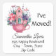 Um adesivo quadrado bonito de cor d'água de 1,5" com "Movimentei", nome e endereço. Decorado com uma casa de conto de fadas rosa, rosas rosa e flores silvestres sentados em uma equipe rosa. Altere facilmente o texto usando o Modelo fornecido. Escolha 20 adesivos pequenos (mostrados) ou seis adesivos maiores de 3". Impresso em papel branco sem ácido. Cor de cheio vibrante, impressão com cheio. Consulte "Sobre este produto" para obter mais informações. Altas classificações.