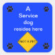 Quadrado Cão de serviço vive aqui o adesivo azul
