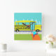 Ei! Espere por mim! Este Relógio de Cartoon de Barramento Escolar Personalizável vai levar seu dia de folga a um excelente. Ele apresenta um desenho animado de uma criança carregando uma lancheira vermelha e xadrez enquanto fazer um traje louco para o ônibus escolar. A criança está vestindo calças azuis reais e uma camisa de turquesa. Ele está correndo por uma calçada laranja, pavimentada. A calçada é cercada pelo tipo de grama verde encontrada apenas nos subúrbios. Há também uma cerca branca de picete. Na rua, vemos um vibrante ônibus escolar amarelo com janelas aqua e portas de vidro. O nome no lado do ônibus é personalizável. Basta clicar no ícone "Personalizar" para substituir o texto existente pelo seu. Atrás do ônibus, vemos um céu aqua e as silhuetas das árvores de cedro. Peça agora. Você não quer ser tardia!