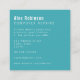 Um design simples e minimalista com seu nome escrito em branco sobre um fundo azul-turquesa na frente, realçado com uma borda branca. Lá atrás, há muito espaço para seus detalhes em branco sobre fundo azul.