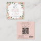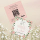 Rosa de logotipo feito à mão | Cartão de visita artesanal — Apresenta o logótipo na parte superior frontal da placa (com uma máscara quadrada), juntamente com o nome da sua empresa e o endereço do Web site. No verso há um código QR personalizável junto com seus outros detalhes comerciais. A parte inferior direita apresenta uma variedade de ícones de mídia social — você pode usá-los para esse fim, trocá-los por ícones da sua escolha ou excluí-los completamente. Todas as cores, texto e fundo são editáveis, exceto o trabalho de arte floral.