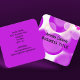 Engraçado com alguns cartões de visitas novos e divertidos com um design de bolha roxa que sopra.