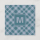 Cartão de visita De Padrão De Xadrez Ciana Tartan Com Cinza De Azul Com Uma Letra Monograma E Texto Personalizável - Estilo De Fábrica De Chic