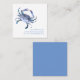 Um único cartão de visita de praia costeira em forma quadrada apresenta minha mão pintada de caranguejo-d-água em tons de azul sobre suas informações de contato. Personalize este modelo com seu nome e título ou empresa. O reverso está em um azul complementar. Este cartão de vida marítimo é adequado para uma boutique oceânica ou praia, cozinheiros, restaurantes de marisco ou para uma atividade temática náutica. Para ver mais designs, visite www.zazzle.com/dotellabelle