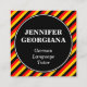 Este design de cartão de visita pode ser usado por um profissional, como um professor de língua alemã, um tradutor alemão ou um especialista em língua alemã. O nome, profissão e contatos podem ser personalizados. Apresenta também listras negras, vermelhas e amarelas, inspiradas pelas cores da bandeira nacional alemã.