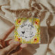 Lindas colônias amarelas de verão com folhagem emparelhada com uma ilustração de galinha e um roteiro rústico para todas as suas informações sobre um fundo branco e kraft.