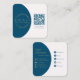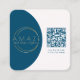 Seu design com o logotipo simples de empresa que contém dois anéis de ouro envolvem seu nome comercial e um código de QR digitalizável; com a capacidade de adicionar o endereço de URL de sua escolha, que pode ser facilmente atualizado no palco posterior. Este design modelo profissional inclui telefone, email, site, pino de localização e ícones de mídia social. Este cartão de visita é adequado para todos os tipos de empresas.