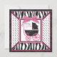 estilo Boutique zebra, damask e impressão com sotaque rosa quente e uma carruagem de bebê.