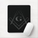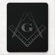 Um mousepad maçónico que ostenta o quadrado e o compasso tradicionais com inserir G.