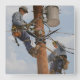 Quadrado equipe de Lineman que trabalha no relógio de polo