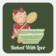 Quadrado Feita com amor adiciona mensagem assando adesivo d