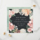 Nossa Floral do Meio-Verão salve os quadros do cartão de data de seus principais detalhes de casamento, incluindo data e local, dentro a exuberante borda floral de rosas e peonias em rosa-pincel, creme e pêssego. Personalize com seus nomes, data do casamento e localização em letras brancas contra um fundo de carvão preto dramático. Cartões que se revertem para um sutil fundo de lavagem com aquarela em verde-claro.