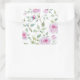 Quadrado Folhas de Aquarela Elegante e Rosas Selo adesivo