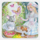 Quadrado Garota no jardim com adesivo de bala de amigos