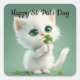 Quadrado Gatinho Com Adesivo de Trevo