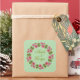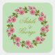 Um adesivo de favor de casamento floral ricamente belo e sombrio com guirlandas florais rosa em água-tinta sobre fundo verde claro. Uma bela guirlanda floral rosa em água-tinta envolve seu texto. Personalize o texto de exemplo mostrado no modelo de design com os nomes dos noivos ou outro texto desejado..