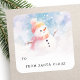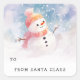 A partir de adesivos com etiqueta de presente que apresentam uma ilustração de um bonitinho bonitinho bonitinho bonitinho vestindo um boneco de neve, e o texto "para" e espaço para você escrever um nome, e abaixo do texto "de Papai Noel".
