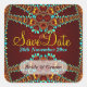 Casamento exótico, Na moda e personalizado exclusivo, Noivado, Aniversário Salve o adesivo quadrado de canto arredondado. Suit Bollywood, comemoração temática do Oriente Médio. Todo o texto pode ser totalmente personalizado, incluindo estilo de fonte e cores.
