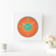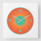 Quadrado Laranja com Aqua Verde no Relógio Branco de Fundo