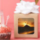 Um autocolante de fotos quadrado de um nascer de sol laranja quente sobre a ilha de Mokulua em Lanikai Beach, Oaha, Havaí, EUA.