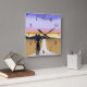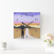 Abstrato aberto para interpretação. Parece ser uma pessoa caminhando em direção ao pôr do sol. E há um longo caminho pela frente. O relógio retroativo apresenta números inversos para aqueles que desejam reverter o relógio ou apenas precisam de um pouco mais de tempo ou estão sempre atrasados.
