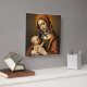 Lindo estilo renascentista Mãe Maria, gentilmente berrando Jesus bebê em seus braços.