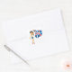 Uma mulher acenando uma bandeira azul branca e vermelha. Esta design parece realmente eficaz neste adesivo