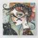Quadrado Mulher Elegante e Relógio de Gato