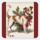 Uma fotografia bonita de um cão com uma fita vermelha sobre e holly no fundo é apresentada neste adesivo de presente. Use este adesivo de etiqueta de presente em sacos de presentes e presentes de presente também!