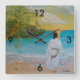 Belo relógio inspirador do nosso Cristo Senhor e Salvador Jesus andando pela praia. Escrito na areia é parte da famosa escritura "Por Deus, Tão Amado O Mundo."