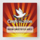 Uma pomba voadora em raios de vermelho e ouro está ao lado da informação de uma Confirmação. Um maravilhoso presente de Parabéns ou produto de festa para qualquer pessoa que seja confirmada em seu evento religioso especial. Personalize o relógio com um nome para um presente verdadeiramente personalizado.