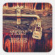Quadrado Porta de madeira russa com um adesivo antiquado pa